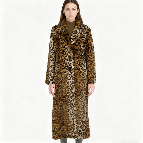 Venta caliente abrigo largo de piel sintética para mujer invierno reducción de arrugas mujer abrigo suelto estampado de leopardo