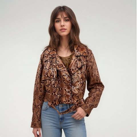 Chaqueta de piel sintética con estampado de piel de serpiente de alta calidad para mujer 2025 para primavera